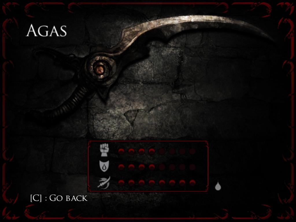 - "The Agas sword is the Assassins' weapon of choice and will give its user the ability to steal an oppenents life force and transfer it to himself."
