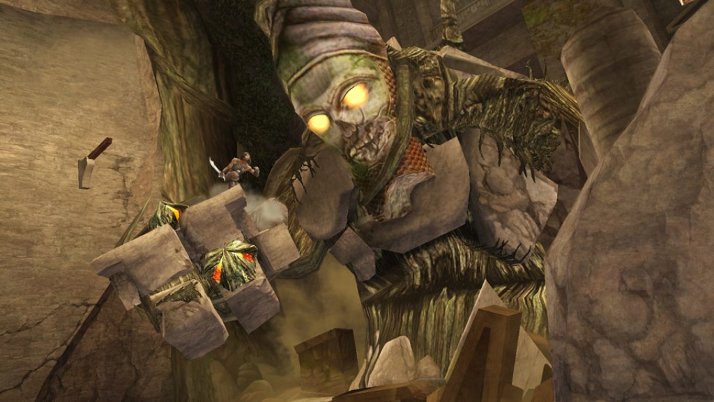 However, the creature managed to replace his head with another mask and attack the Prince once again, this time, using a big pillar for second arm. Using the same strategy, the hero stunned the monster and cut even the second head. Unfortunately, there was still another mask, and the Prince had to fight the monster once again and cut off the last head of the creature, killing it for good.