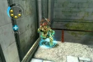 The shield of the monster prevents the Prince from hitting the creature, however it can be destroyed with some effort. The shield also defends the creature from Regenerative Powers. However, without it, the creature is vulnerable to every attack of the Prince.