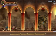 The Prince hurries to save his brother hoping not to be too late. He meets Razia who inform him to activate four elemental fountain around the palace to defeat the sand army[2].